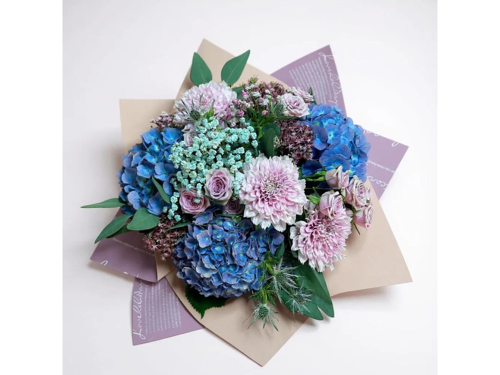 Luxusní a sofistikovaná kytice v nádherných fialovo-modrých tónech. Tato kompozice je vrcholem elegance a stylu!