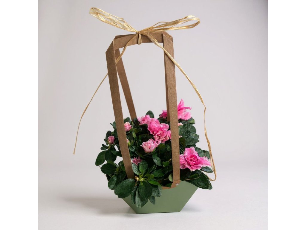 Nádherně kvetoucí azalka v jemně růžových odstínech, umístěná v praktické zelené dárkové tašce s přírodními dřevěnými úchyty a zlatou stuhou. Azalka symbolizuje vášeň pro vzdělávání a trpělivost – vlastnosti, které každý dobrý učitel potřebuje. Bohaté květy a svěží zelené listy přinášejí do třídy nebo domova učitele kousek přírody a pozitivní náladu. Dárková taška je znovupoužitelná a praktická, což oceňují ekologicky smýšlející pedagogové. Perfektní volba pro vyjádření úcty a přání úspěšného školního roku!