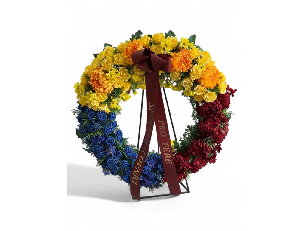 Barevný smuteční věnec s bordovou stuhou - SPARTA